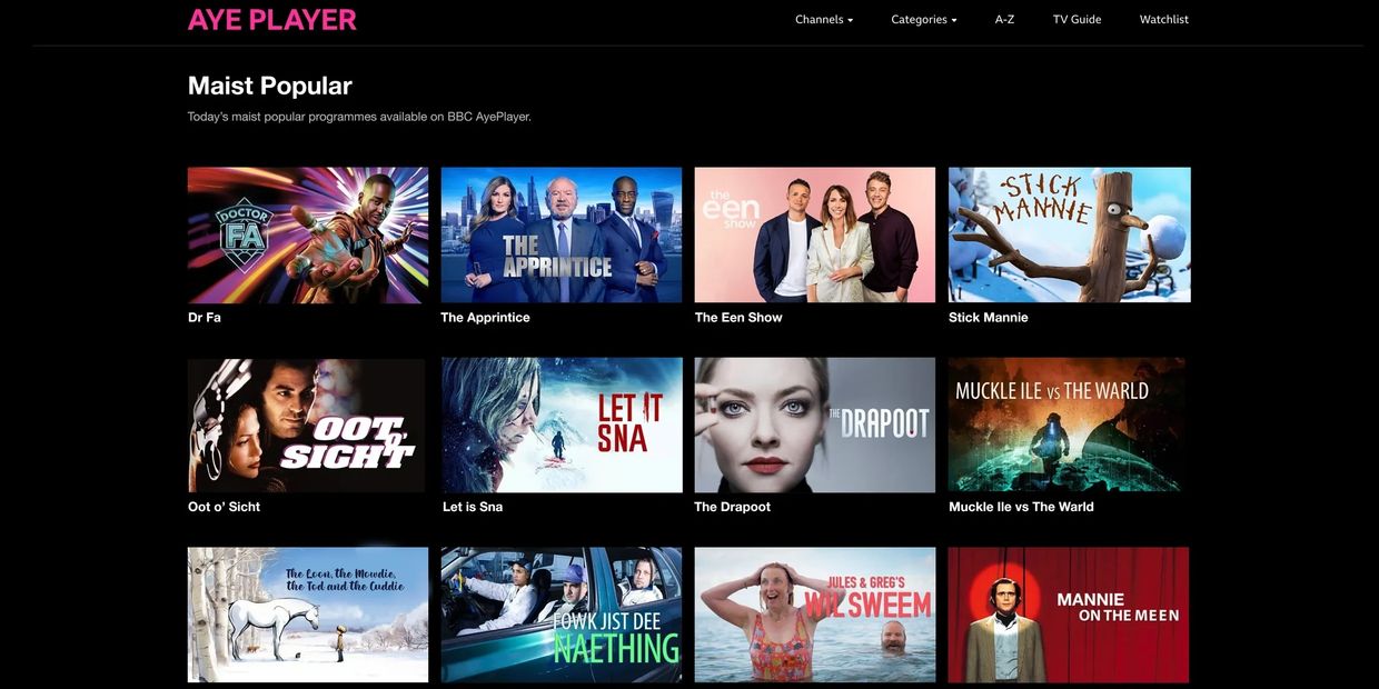 The selection of entertainment, documentary, film, comedy, CBeebies and nature programmes have been carefully selected and dubbed by local Doric voice actors. Available to stream from 1st April 2024.